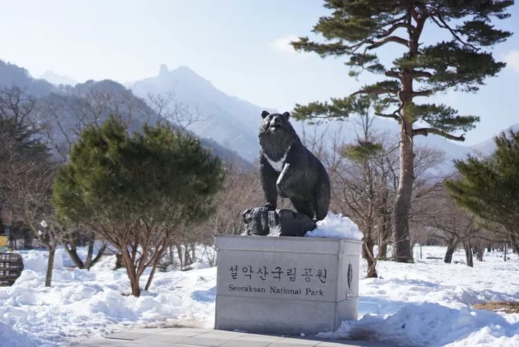 雪嶽山為韓國第五座國立公園,以主峰大青峰為界,臨接束草市的東側為外雪嶽,西側為內雪嶽,而寒溪嶺與五色一帶則為南雪嶽。大青峰名列漢拏山、智異山之後的韓國第三高峰,因一年有5~6個月覆滿白雪而得名「雪嶽」。雪嶽山的日出與日落景色格外美麗,連綿的三十多個山峰,形成壯觀的山勢。若從雪嶽山小公園附近搭乘纜車,無論大人小孩都能在此輕鬆欣賞雪嶽山的風景。