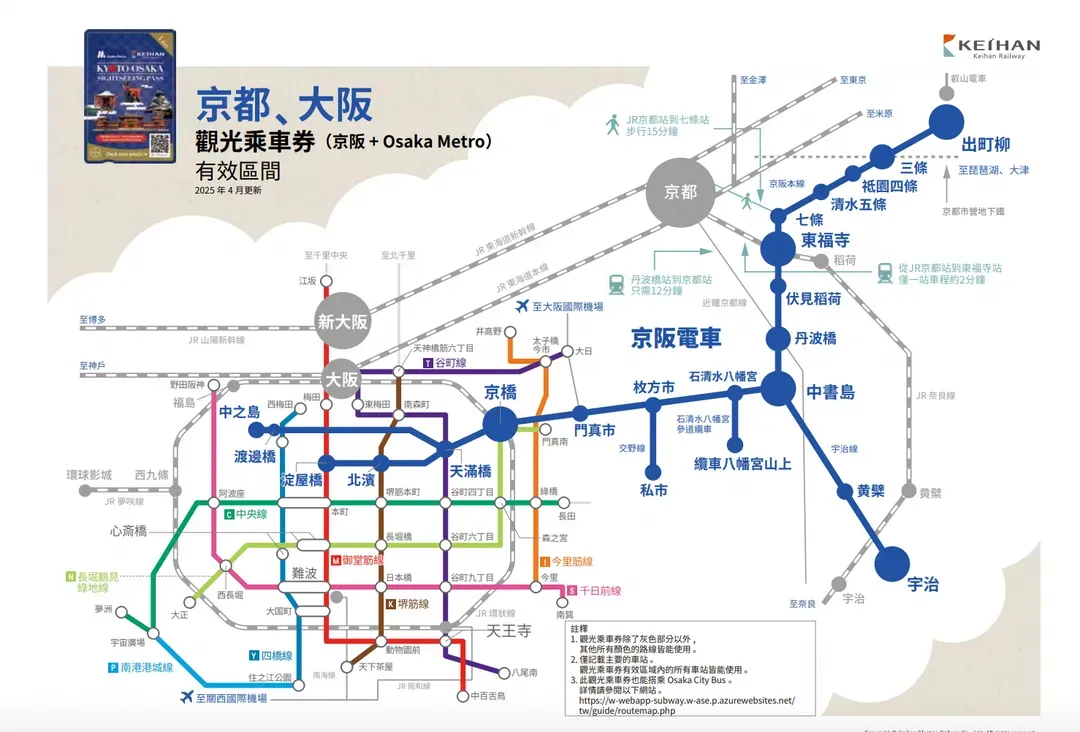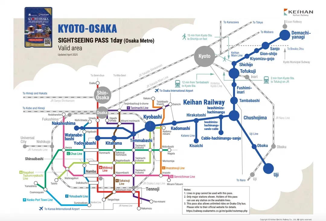 - 此通票不適用於阪急、北大阪急行電鐵、近鐵或其他公司路線。