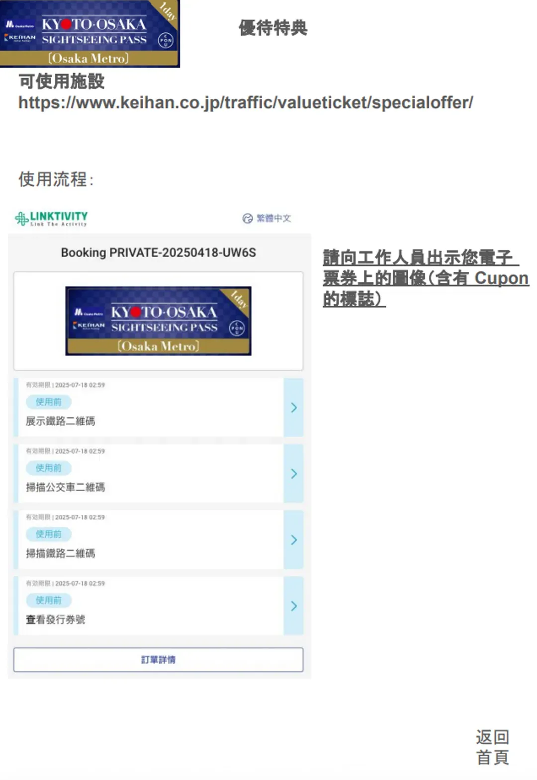 - 使用優惠特典時,請向設施工作人員出示電子票螢幕。