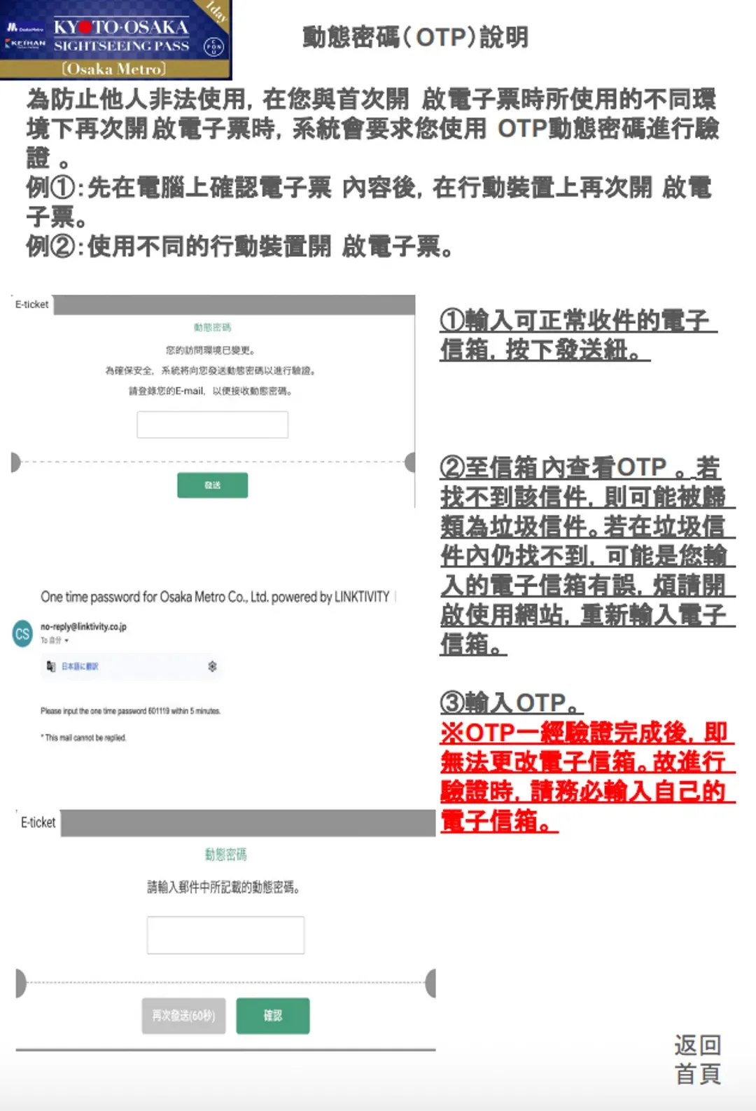 - ※請注意:OTP一經驗證完成後,即無法更改電子信箱。故進行驗證時,請務必輸入自己的電子信箱。