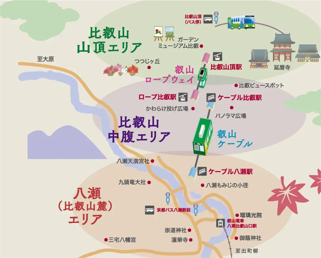 - 叡山纜車・空中纜車將於冬季停運,請事先於官網確認營業期間。