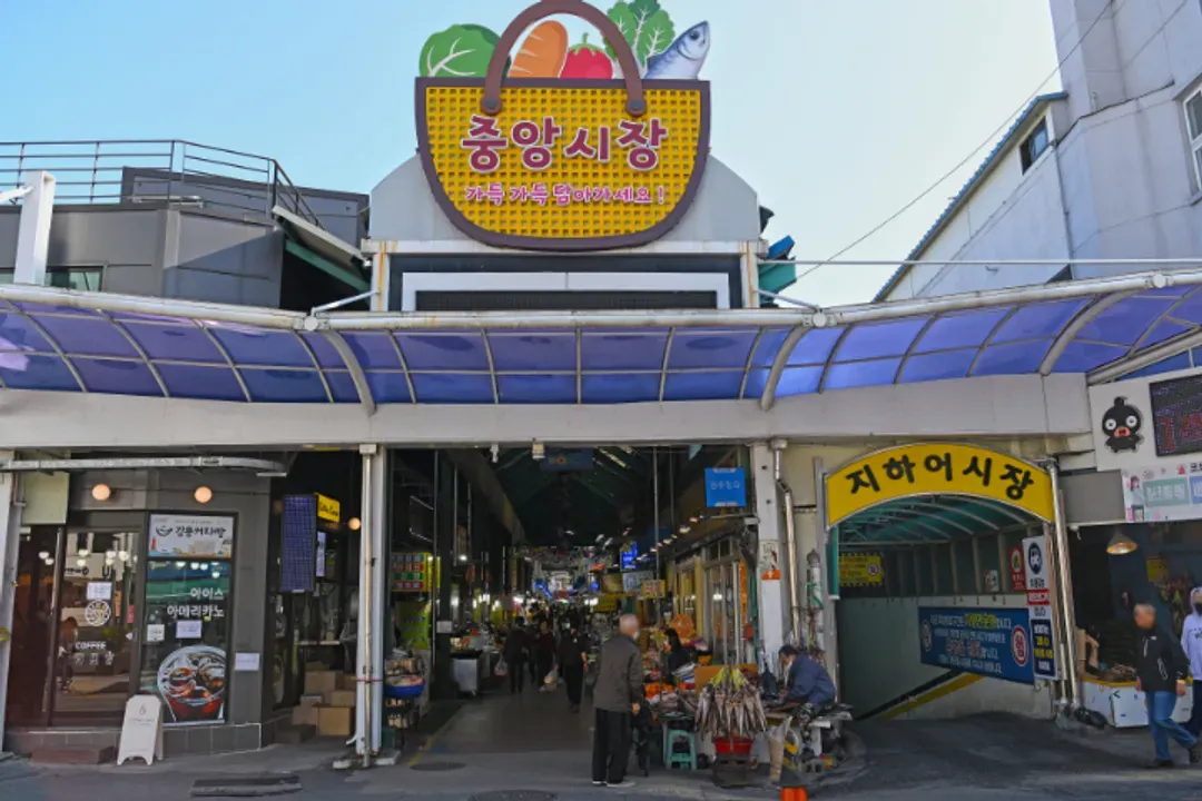 中央市場為江陵市最具代表性的傳統市場。來到這個每天營業的市場,可以一窺江陵居民的生活樣貌,也能嚐到大蒜麵包、炸雞等當地推薦美食。