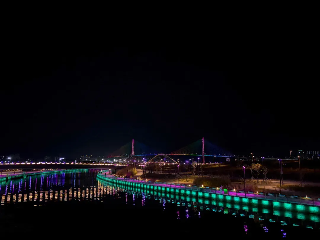 ■ 親水公園:漫步於繽紛幻彩的濱海步道,沉浸在令人屏息的迷人夜色中。