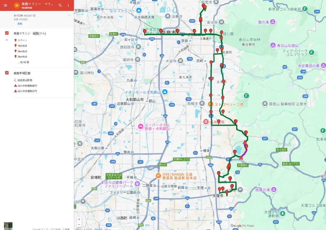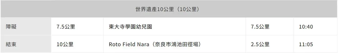 - 賽事起/終點:樂敦奈良田徑場 (奈良市鴻池田徑競賽場)