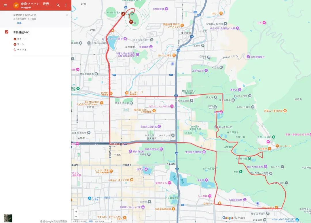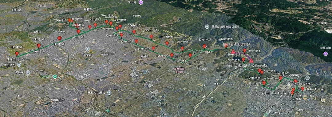 以樂敦奈良田徑場(奈良市鴻池田徑競賽場)為起點及終點,奈良市內折返路線。