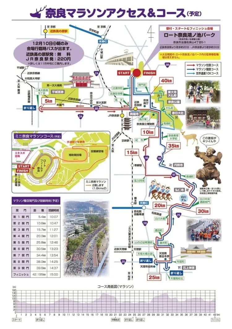以樂敦奈良田徑場(奈良市鴻池田徑競賽場)為起點及終點,奈良市內折返路線。