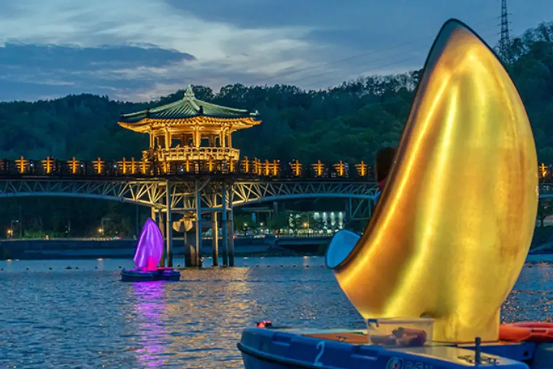 此外,行程也包含以月映橋為背景,搭乘月亮船欣賞浪漫夜景的體驗。一邊乘船遊覽安東湖,一邊眺望月映橋美景,可透過不同的角度拍照留念。