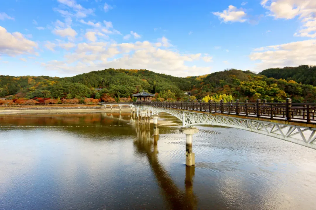 月映橋是一座3.6公尺寬的木造步行橋,橫跨了洛東江。全長387公尺,是韓國最長的木橋。這座橋的名字恰如其分,每當夜幕低垂,月光映照時,就顯得更加美麗,也曾獲韓國觀光公社評為「夜間旅遊100選」的景點之一。位於橋中央的月映亭更是熱門的拍照打卡地點,不妨跨越木橋,沿著河畔散步賞景。