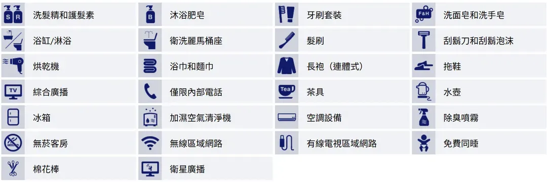 記憶海綿枕頭, 袋裝彈簧床墊、高速網路連線(免費 Wi-Fi 或 LAN)、附加濕功能的淨離子群空氣清淨機(僅限無菸客房)、 接待櫃檯服務 (收費)影印、傳真、快遞服務、洗衣、按摩。