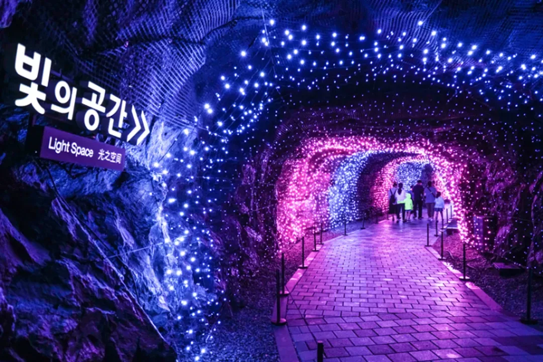 光明洞窟為日本殖民時期曾遭徵用的場所,在廢棄40多年後,光明市於2011年將洞窟打造成一個結合文化藝術體驗與歷史底蘊的休閒空間。內部規劃了多元體驗與用途的空間,像是能品嚐紅酒的紅酒洞窟、洞窟水族館、洞窟藝術殿堂、黃金瀑布與LED光空間等20多種的特色設施,等您來探索!