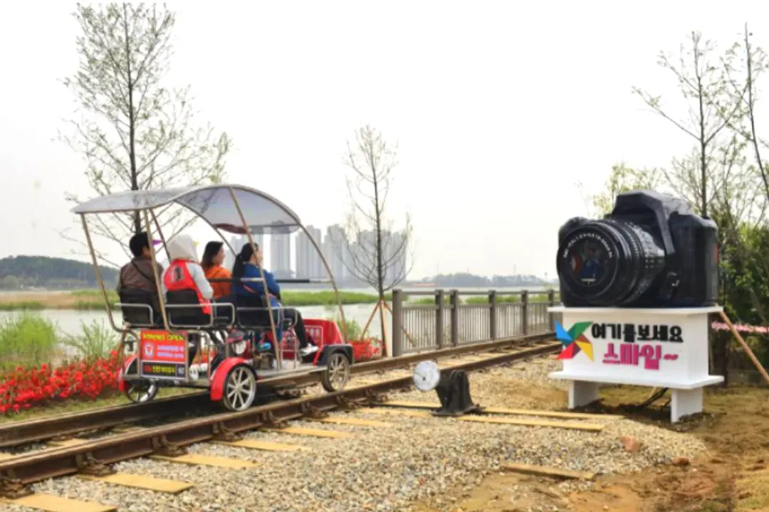 搭上義王鐵道自行車,體驗韓國內最早的湖水循環鐵路自行車