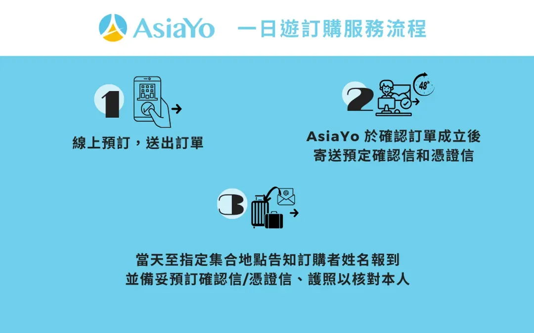 - AsiaYo 日本一日遊行程價格透明安心,比價方便;行程、導覽語言、集合點、餐食等資訊清楚透明,沒有費用陷阱,報名更安心。