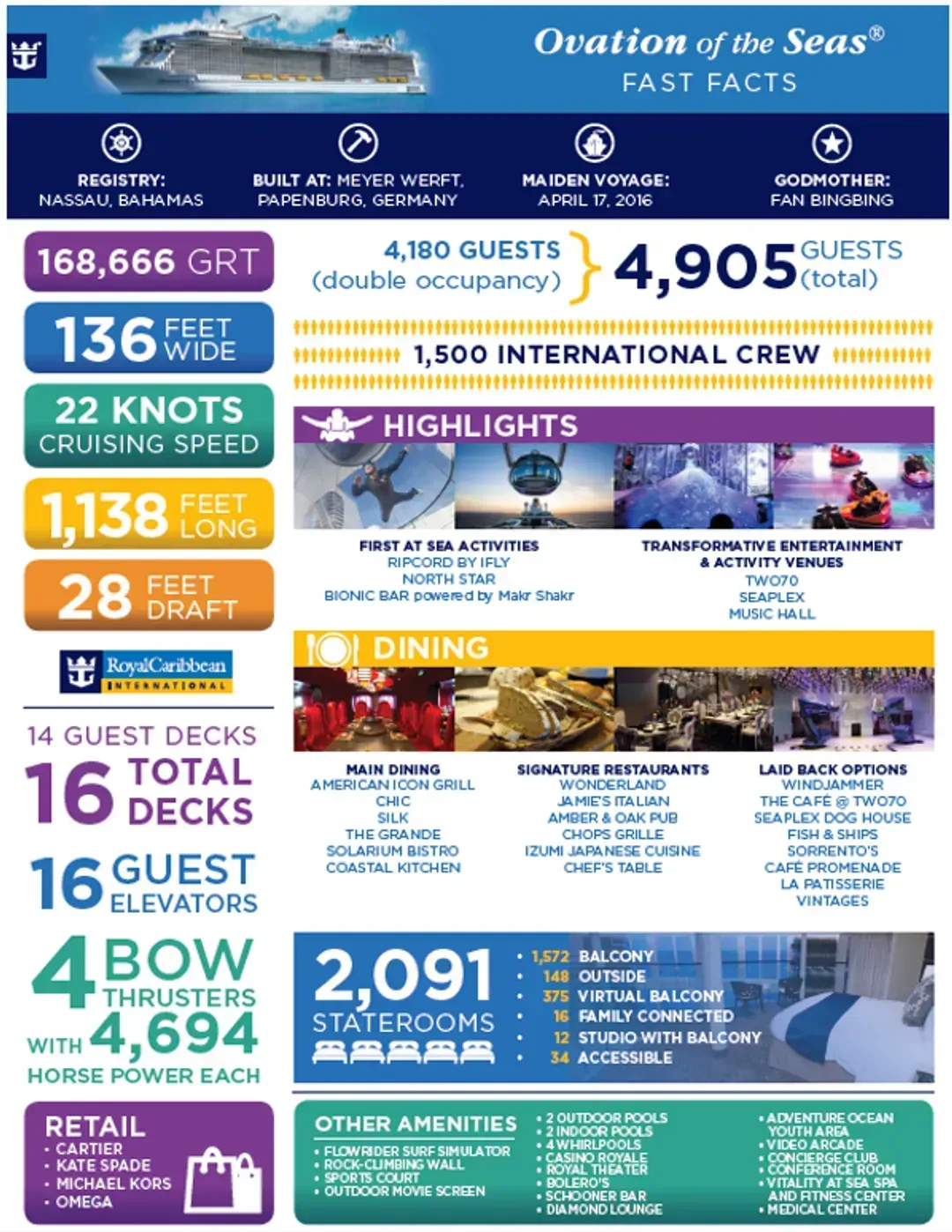 - 艙房住宿乃根據皇家加勒比國際遊輪實際供應而定,並做最佳安排,因無法指定房號,如有特殊需求,請於訂位前提出,一切需以回覆為準。