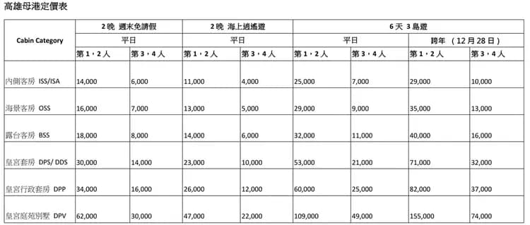 ■ 艙房價格已含每人港務稅。