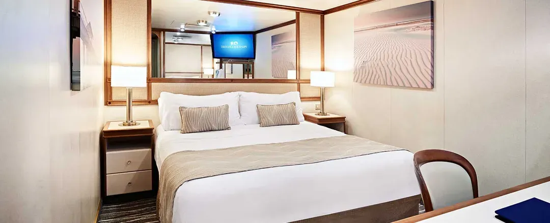 內艙客房是您充電恢復精力的理想場所。我們最經濟實惠的選擇,設有兩張單人床或一張大號床。包括冰箱、吹風機、電視、衣櫃以及配備淋浴的浴室等等其他設施。滿足您的一切需求,讓您感受到賓至如歸。