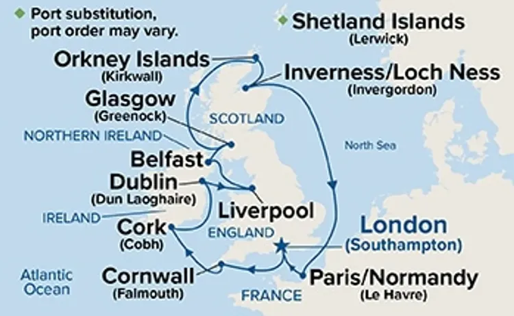 【公主遊輪】盛世公主號 Majestic Princess|英國列島與法國&貝爾法斯特 13天 的郵輪行程路線細節,可參考此頁面的「行程簡介」內容,進一步了解本趟郵輪旅遊路線及停留港口、啟航時間等資訊。您也可以從上方圖片說明了解更多行程、或聯繫客服。