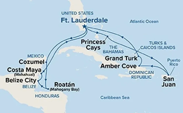 【公主遊輪】帝王公主號 Regal Princess|東/西方加勒比海冒險家之旅 15天 的郵輪行程路線細節,可參考此頁面的「行程簡介」內容,進一步了解本趟郵輪旅遊路線及停留港口、啟航時間等資訊。您也可以從上方圖片說明了解更多行程、或聯繫客服。