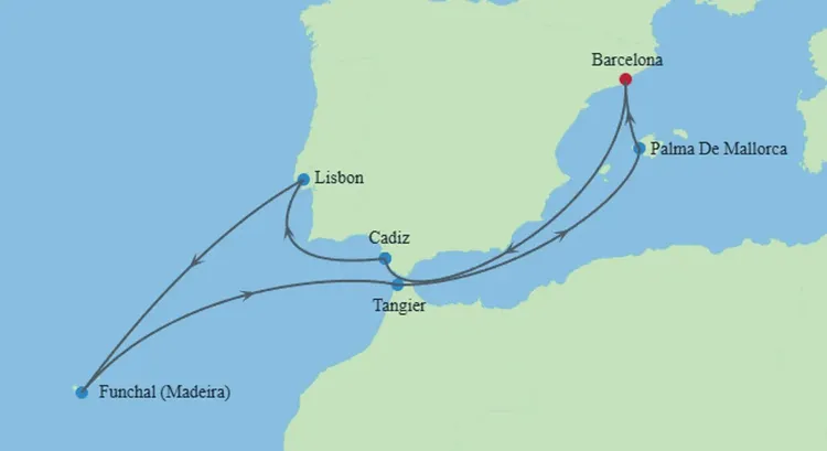 CELEBRITY XCEL ~ 西班牙、葡萄牙和摩洛哥11晚 的郵輪行程路線細節,可參考此頁面的「行程簡介」內容,進一步了解本趟郵輪旅遊路線及停留港口、啟航時間等資訊。您也可以從上方圖片說明了解更多行程、或聯繫客服。