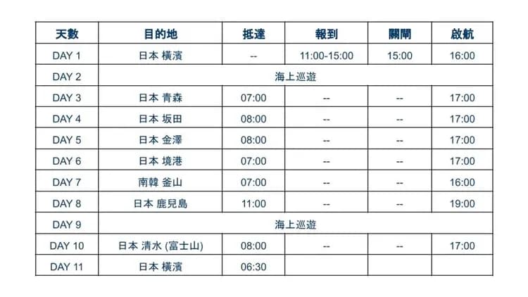 ★ 不含停靠點岸上觀光行程丶領隊服務費。
