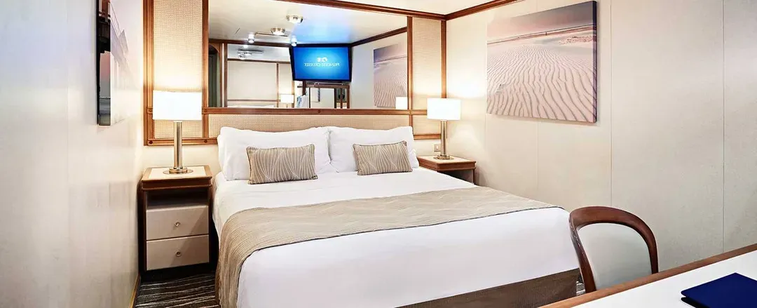 陽台艙舒適精美,內部設施一應俱全。47 平方英呎(1.3坪)的私人陽台讓您在客艙內盡情領略迷人海景。