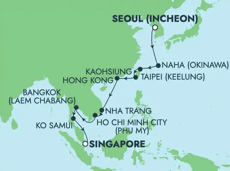 【挪威郵輪天空號】菲律賓、越南、馬來西亞 14 天 - 新加坡登船 基隆下船 的郵輪行程路線細節,可參考此頁面的「行程簡介」內容,進一步了解本趟郵輪旅遊路線及停留港口、啟航時間等資訊。您也可以從上方圖片說明了解更多行程、或聯繫客服。