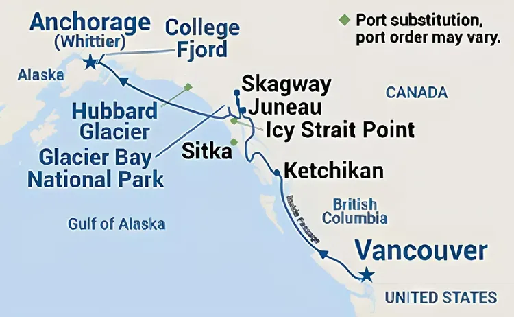 【公主遊輪藍寶石公主號】冰河灣航程(北上) 8天 - 2025 出發 的郵輪行程路線細節,可參考此頁面的「行程簡介」內容,進一步了解本趟郵輪旅遊路線及停留港口、啟航時間等資訊。您也可以從上方圖片說明了解更多行程、或聯繫客服。
