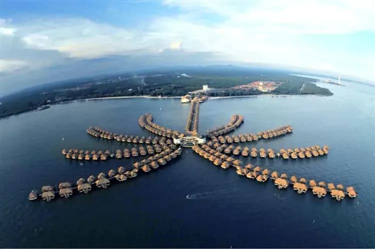 位於馬來西亞西南部海岸線,正對馬六甲海峽的隱蔽水域,遠離塵囂,無敵海景,盡收眼底。房間數共建有315間海上渡假屋,均為雙拼渡假村或聯排渡假村設計,與周圍自然生態環境渾然一體,有著異國情調的熱帶天堂,設計結構受了玻利維亞和馬爾地夫元素的影響採用了天然的混合材料,將巴里島熱帶氣息的理念融入風景如畫的設計裡。