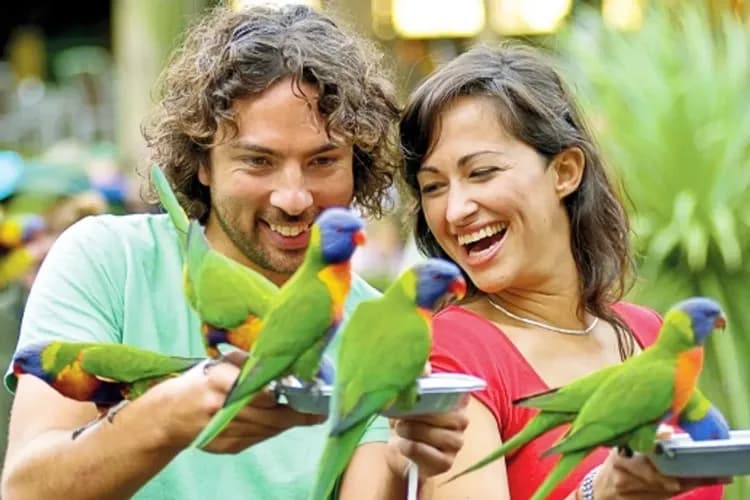 - 餵食彩色鸚鵡:七彩的鸚鵡從天而降,您可以拿著園方準備的飼料餵食。