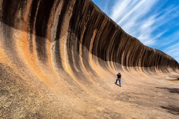 長久以來波浪岩一直被埋沒在西澳中部沙漠裡,直到1963年,一位攝影師在某次旅行拍攝波浪岩的畫面,在美國紐約國際攝影比賽中獲獎,成為爭先恐後取景的地點。高度約15公尺連綿長達100公尺的波浪形狀,令人感到驚艷。