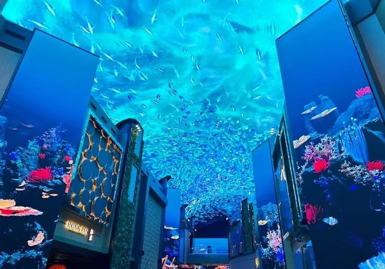 絕美的LED極光走廊燈光秀,長達150公尺、25公尺高,從天花板到牆面,都被高畫質LED螢幕全屏覆蓋,是絕對不能錯過的打卡亮點。在轉瞬之間彷彿來到海底隧道、見到此生難得一見的極光,栩栩如生的超真實場景令人目不轉睛,每天都想到極光道享受這魔幻的體驗,根據不同節日還會推出不一樣的燈光內容。