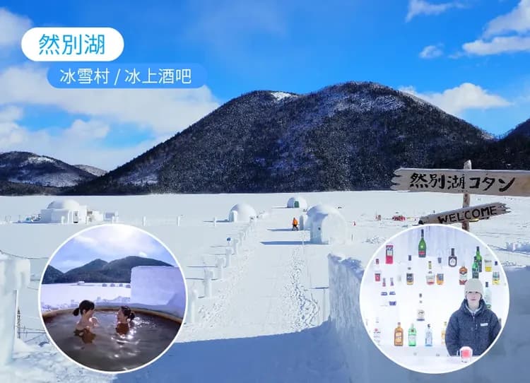 住宿飯店→然別湖冰上村(冰上風呂/冰之教堂/冰之酒吧).預計2026年1月24到3月15日※特別贈送每位貴賓DIY冰杯+水果酒或葡萄酒→阿寒冬華美雪冰上樂園【雪上摩托車+雪上越野車+雪上香蕉船+冰上釣魚)+品嚐公魚天婦羅】→阿寒湖(天然保育植物MARIMO綠球藻生植地) →阿寒湖溫泉街散策~傳統愛努村落(Kotan)【阿寒湖冰上嘉年華】2026年2月1日~3月3日