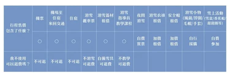 6.指導員名單於出團前確認,報名兩週後恕學員無法要求更改需要教學/不需要教學,或更換SKI/SB課程項目,亦不得主張退費。