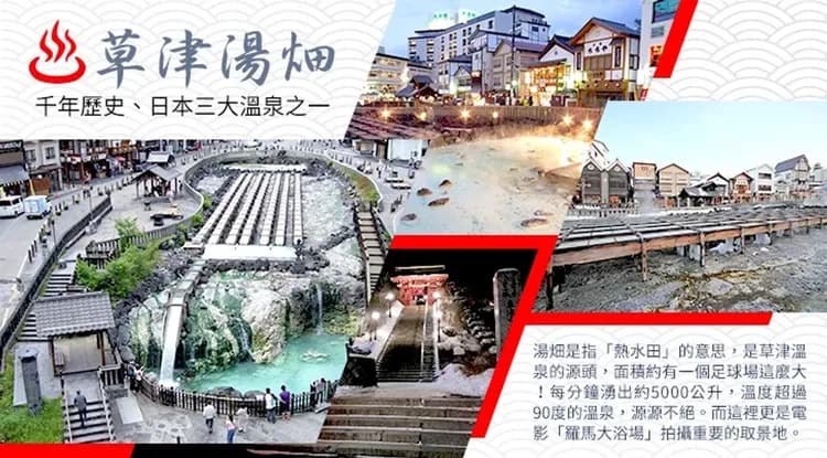 萬座溫泉鄉➡️(約 20 km) 日本三大溫泉~【草津溫泉】~草津湯田、舊街散策、西の河原通➡️(約 58 km) 群馬開運聖地~【高崎.少林山達摩寺】探訪名物達摩不倒翁之起源~★特別安排達摩DIY體驗➡️(約 133 km) 免稅店➡️(約 20 km) 東京逛街購物 (自由活動)
