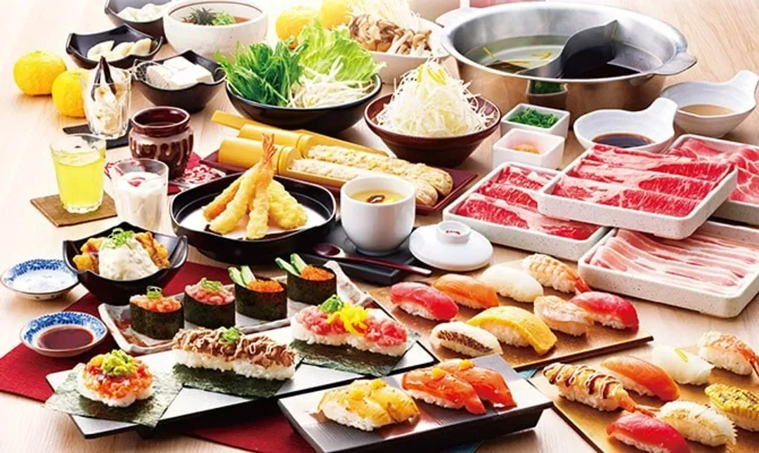午餐:牛肉.豬肉.蔬菜涮涮鍋吃到飽+軟飲喝到飽 (餐標3500日幣)