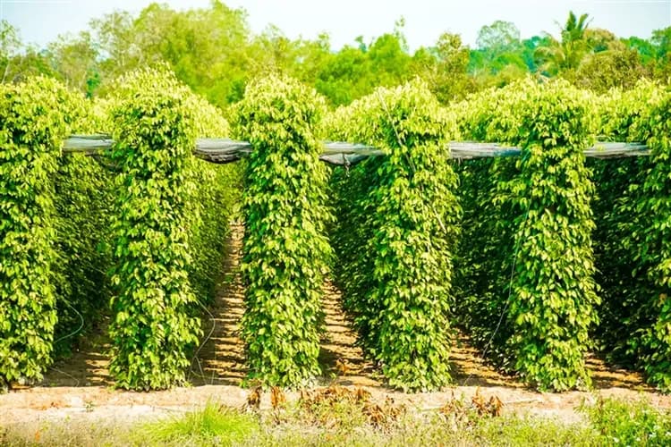 富國島是越南最大的胡椒產地之一,年產量約達400噸,供應全球大量需求。當地氣候與土壤條件極佳,使得胡椒品質優良、香氣濃郁。走進胡椒園,一股自然辛香撲鼻而來,整齊排列的胡椒藤高約兩公尺,綠油油的果實成串懸掛,景致如同葡萄園般迷人。胡椒樹需栽種三年後才會結果,並可連續採收十年,主要收成期落在每年2月至7月。