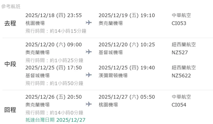 3. 紐航團體經濟艙可加價升等空中沙發、豪華經濟艙、豪華商務艙,加價升等需待回覆票價以及機位狀況,無法保證一定有機位。