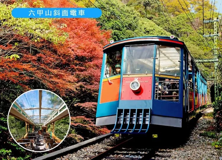 桃園國際機場/大阪關西海上空港→SEVEN PARK 天美/或AEON臨空泉南→特別安排搭乘六甲山斜面電車(單程)→三分一博志打造的新裝置藝術~自然體感展望台 六甲枝垂展望台~花園露臺→美利堅公園散策~眺望神戶塔~神戶港絕景→飯店
