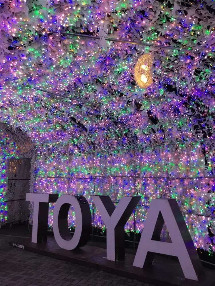 洞爺湖溫泉燈飾街:1萬2千多盞華麗的小燈佈置於洞爺湖溫泉街道兩旁,製造洞爺湖溫泉美麗夜景。40多萬燈泡組成的光之隧道,長約70公尺,將洞爺湖溫泉裝飾得五彩繽紛。