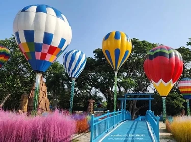 是一座複合式館區,這裡有迷你泰國各地代表性建築利用各式各樣的光雕聚光,介紹泰國古文明的特色讓您別有另一種不同的欣賞特色,還可自費租借泰服來拍照保證讓您有特別趣味,另一區則有利用光影和螢光所展現的水底世界和魔幻世界別有一番特色,再加上360度的立體聲效,幾乎使所有的客人都屏氣凝神的欣賞!戶外則有網美熱氣球.天空樓梯及復古汽車,很受小朋友和大人的歡迎,保證讓您手機按不完!