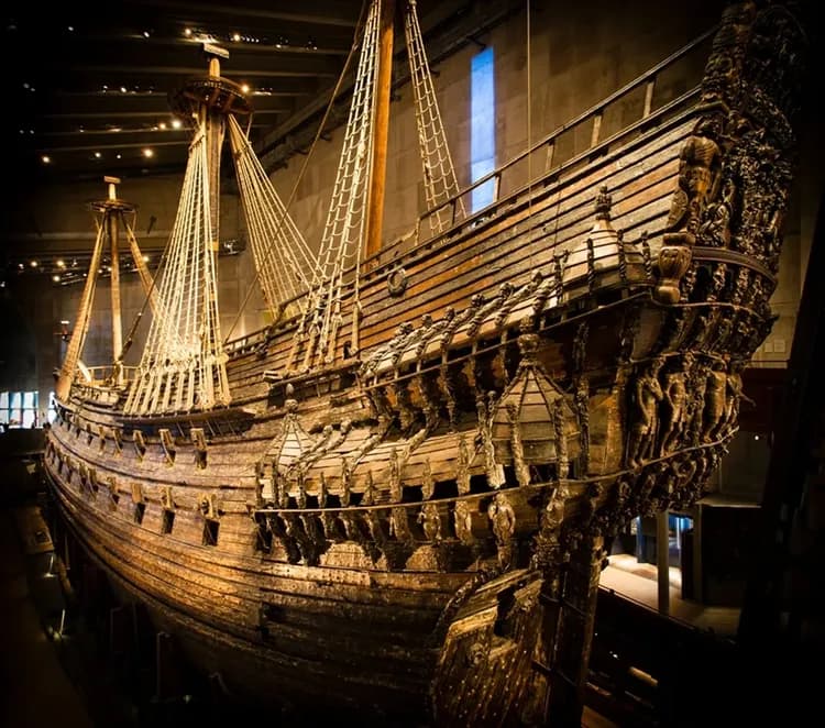 瓦薩號戰艦在1628年斯德哥爾摩港的首航中沉沒,在海底沉睡 333 年之後,這艘強大的戰艦被打撈出水,船身及數百個精美雕塑彷彿巨大拼圖般的還原組合重現於博物館內展示,時至今日,瓦薩號仍是世界上保存最完好的十七世紀船舶。