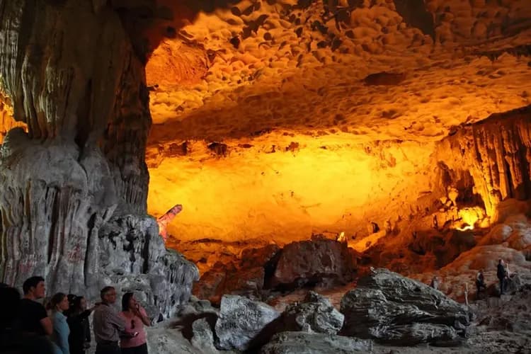 12:15:探索驚訝洞Sung Sot 洞穴 ,下龍灣最大、最壯觀的洞穴,擁有各種獨特形式的奇妙而神秘的千年鐘乳石