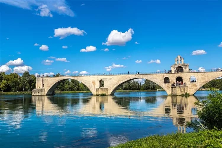 聖貝內澤斷橋起始於牧羊人「貝內澤」受到神的啟示,向民眾幕捐並終其一生辛勞而蓋成橋梁以連接兩岸造福居民。原始此橋有22個拱門,然而因十七世紀時隆河氾濫,今日所見已是一座無法通向對岸的橋,但仍吸引世界各地的旅人前來一睹風采,與聖皇宮同是亞維儂最具代表性的世界文化遺產(1995登入)。
