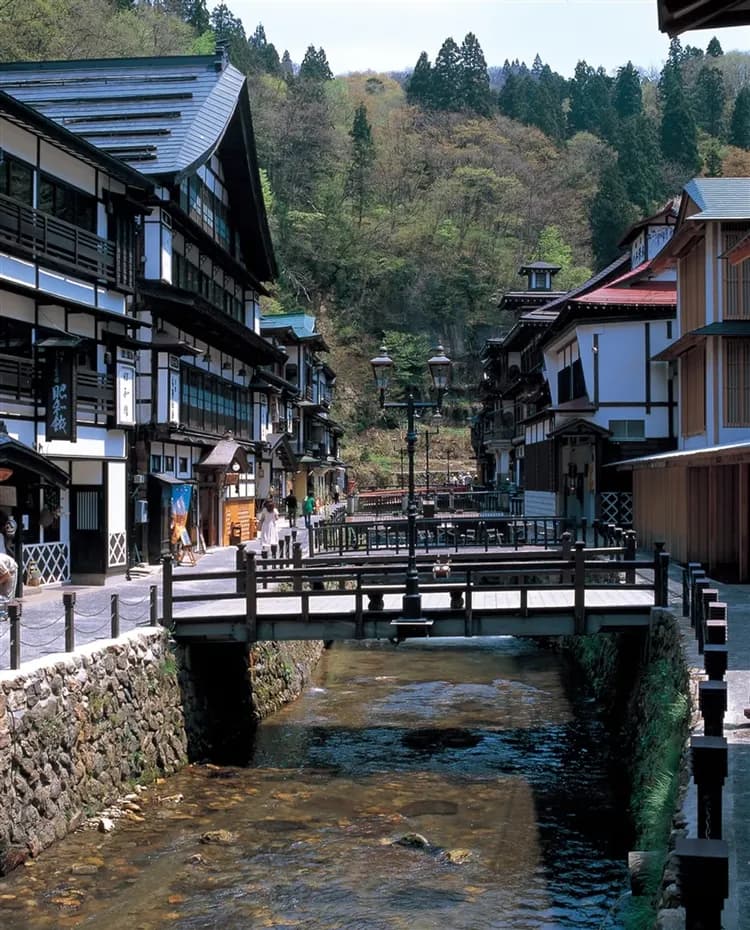因為一部電視劇「阿信」,而聞名於世。銀山溫泉原只是銀礦礦工消除疲勞的著名溫泉,現在還殘留者大正羅?氣息。銀山溫泉是由江戶時代時非常繁榮的「延澤銀山」而來,而被稱為溫泉街則是由後來興建的旅館直接將銀山川自然湧出的源泉當作內湯使用後開始且變