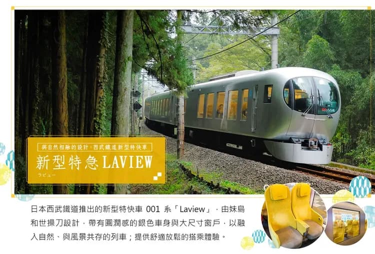 Laview新型特快列車(池袋站-所澤站)-川越小江戶~藏造古都老街~菓子屋橫町-輕井澤溫泉區/或嬬戀溫泉區/或萬座溫泉區
