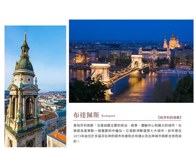 布達佩斯Budapest【英雄廣場、自由橋、鏈橋、中央市場、漁人堡、馬提亞斯教堂、多瑙河遊船】