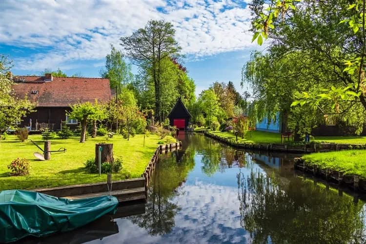 斯普雷森林以交錯的水道、森林與傳統木舟聞名,靜謐的水鄉風貌,被視為北德最具特色的自然文化景觀。