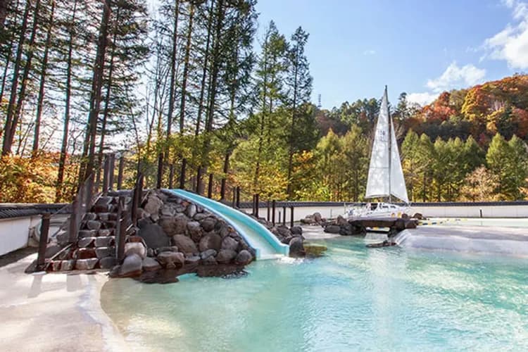 位於得天獨厚的北湯澤溫泉地區。在1500平方公尺的室外天然溫泉《溫泉海濱》裏有滑梯、按摩浴池,讓您彷彿置身在海灘一樣;室內和室外溫泉浴可讓客人放鬆身心;餐廳以《湯姆歷險記》為主題,設計像遊樂園,孩子們可以在那裡盡情玩樂。