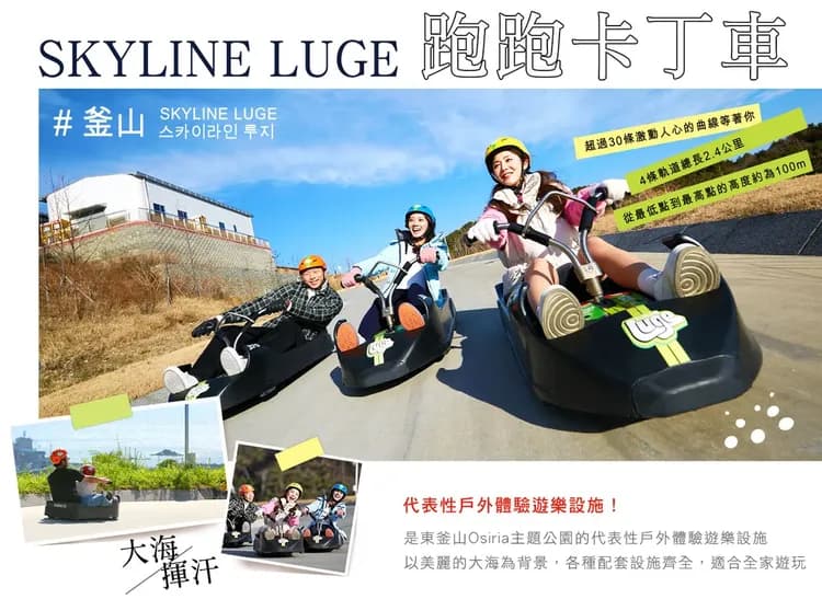 欣賞絕美海景,來自紐西蘭超級好玩《Skyline Luge滑車+景觀纜車(兩次體驗券)》-樂天Outlet購物中心-新世界SPA LAND汗蒸幕(含門票+專用衣)