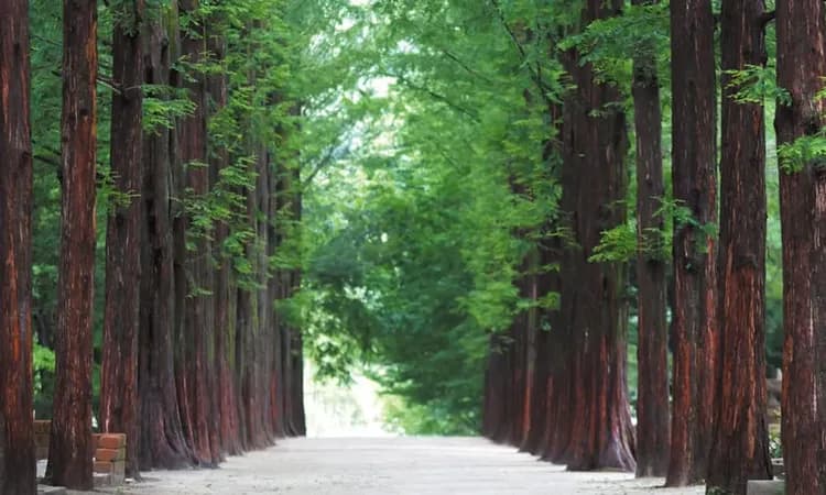 許多韓劇喜愛的拍攝場景。在碼頭坐船約5分鐘,穿過楸樹林道,就可來到杉木林道。