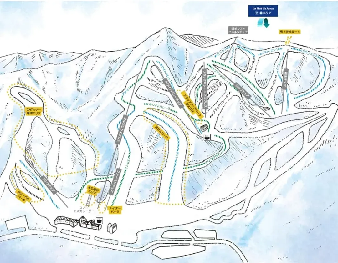 隨著連接南區(原ALTS磐梯)北區(原貓魔滑雪場)的吊椅纜車啟用,貓魔滑雪場成為一座橫跨南北的大型滑雪場之一。